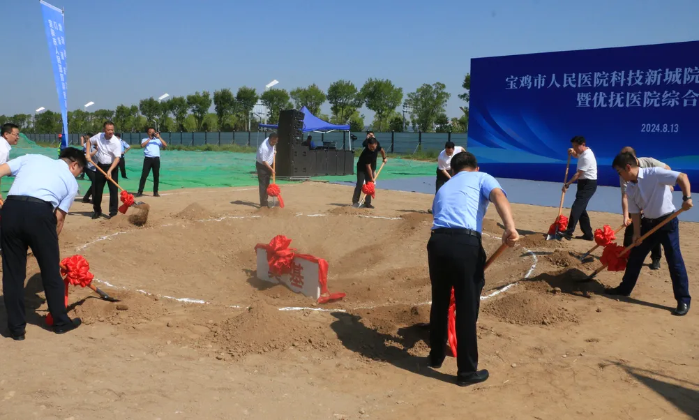 8月13日上午,由寶雞高新投資控股有限公司代建的寶雞市人民醫院科技新城院區門診醫技綜合樓暨優撫醫院綜合樓奠基。