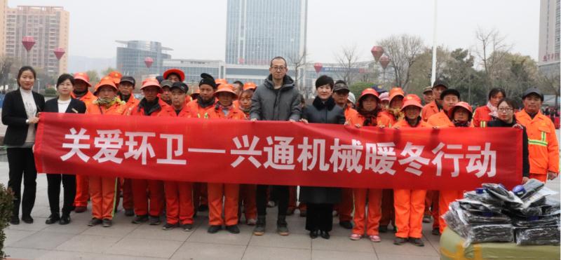 2019年12月12日上午10點,興通機械在高新廣場開展“關愛環衛——興通機械暖冬行動”,向環衛工作人員捐贈了手套、圍脖、護手霜共計810套。活動現場,高新園林環衛公司負責人及愛心企業領導將手套、圍脖、護手霜親手送到環衛工人代表的手中,并送上了真摯的問候。