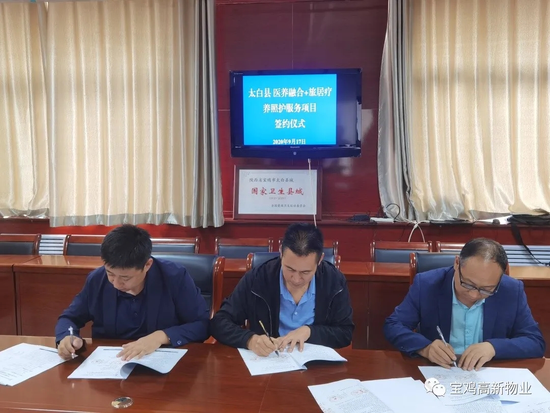 寶雞高新物業(yè)管理有限公司旗下“寶雞惠生活養(yǎng)老服務(wù)中心”在養(yǎng)老服務(wù)產(chǎn)業(yè)上踐行健康智慧養(yǎng)老+醫(yī)養(yǎng)融合新模式,致力于打造惠生活·養(yǎng)老智能化、連鎖化、品牌化、專(zhuān)業(yè)化發(fā)展,中心于2020年9月17日與太白縣衛(wèi)生健康局、縣中醫(yī)醫(yī)院就太白醫(yī)養(yǎng)融合+旅居療養(yǎng)照護(hù)建設(shè)項(xiàng)目舉行了簽約儀式。
