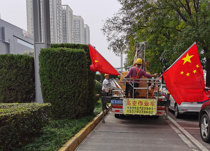 近日,高新文化投資有限公司在蟠龍路、和諧路全段,高新廣場和渭河生態體育公園等地方懸掛國旗,營造了熱烈喜慶、歡樂祥和的國慶氛圍。據悉,本次氛圍營造共計懸掛2號國旗252面,3號國旗87面。