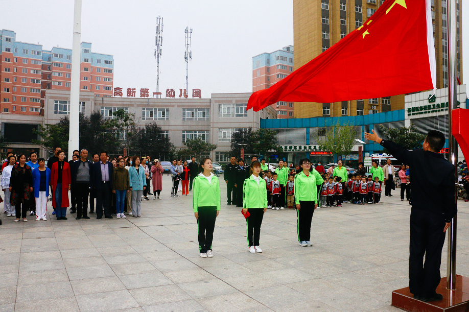 在激昂的國歌聲中,鮮艷的五星紅旗冉冉升起,全體人員面向國旗莊嚴行禮,共同祝福偉大祖國繁榮昌盛。