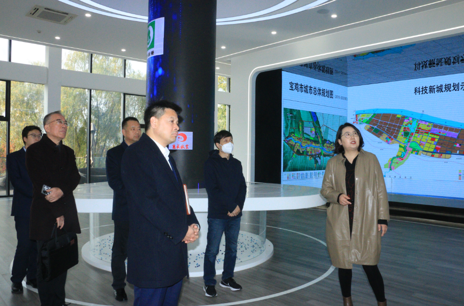 管述學一行參觀了高新區科技新城展廳,詳細了解科技新城規劃建設情況,同時,對集團重點項目中國鈦谷鈦及新材料產業園一期二期、科技新城人才公寓等項目投資計劃、建設規模及進度進行了全面調研,聽取了磻溪鎮三產用地回收情況介紹。